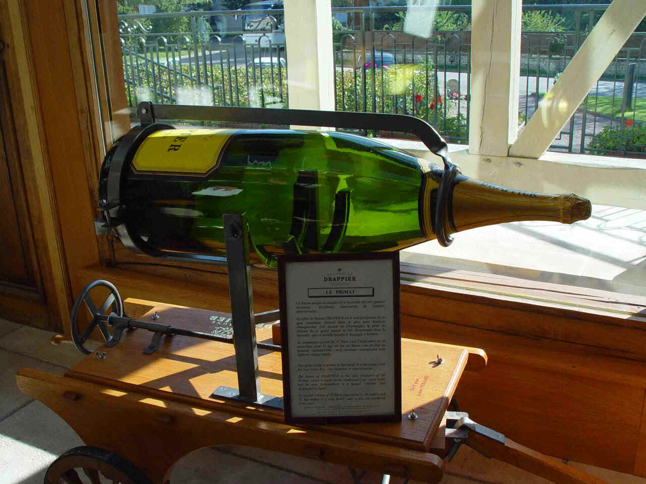 The town of Troyes A church in Troyes A visit to another Champagne house More tasting Bottles of champagne Bottles of champagne maturing A glass of champagne Drappier Sue just before another tasting A large bottle of champagne Last night in Reims - dinner with the group