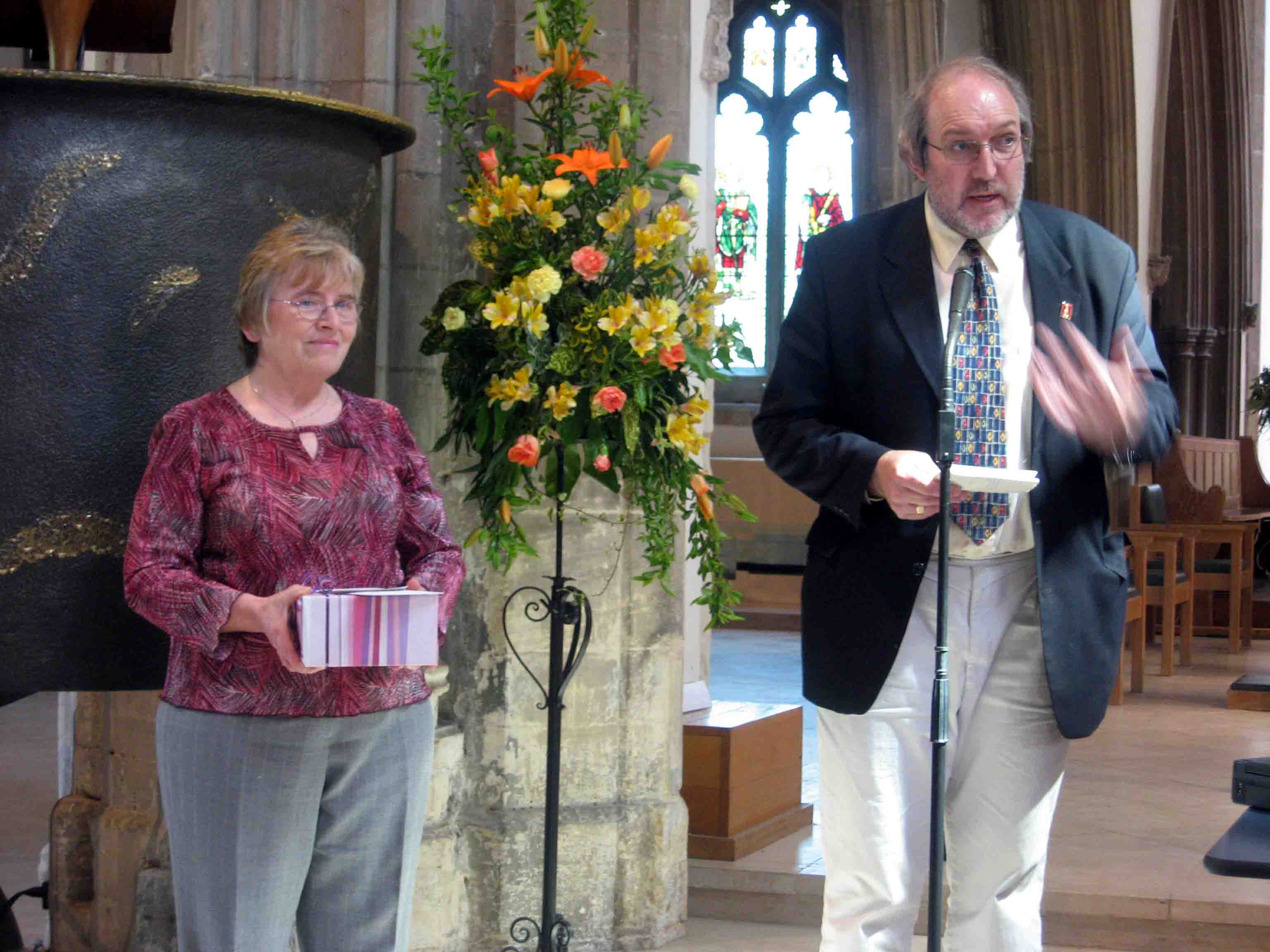 The photographs below were taken at the Annual General Meeting of the Essex Association of Change Ringers at Chelmsford Cathedral on Bank Holiday Monday 5th May 2008. John Tipping stood down after 35 years and Wendy Godden after 34 years as the Auditors/Independent Examiners of the Essex Association of Change Ringers. |