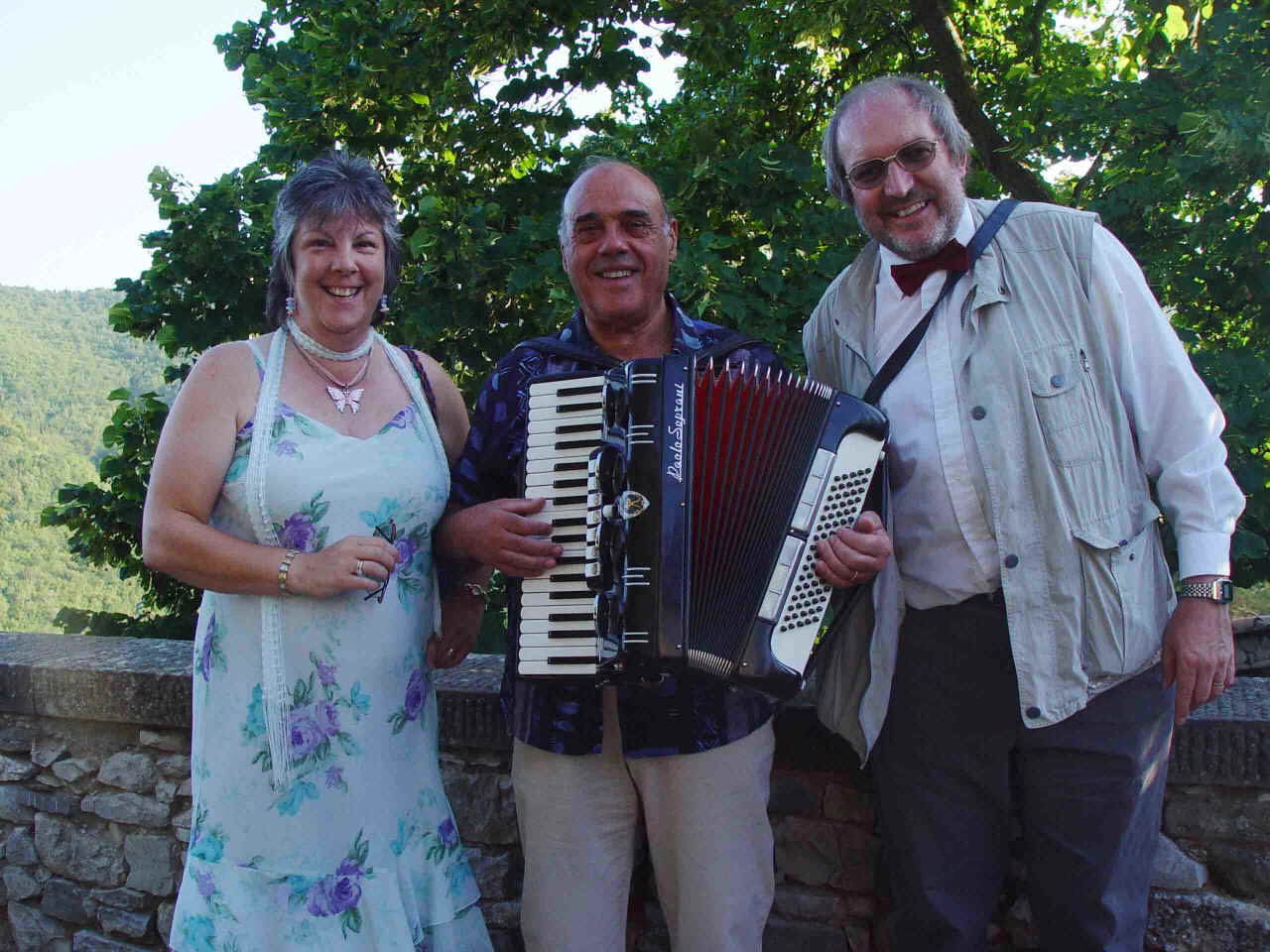 Sue's birthday dinner at Vicchiomaggio Castle The accordionist