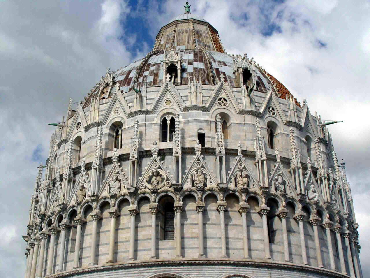 Us at the top of the Leaning Tower of Pisa Cathedral and Baptistry viewed from the top of Pisa tower