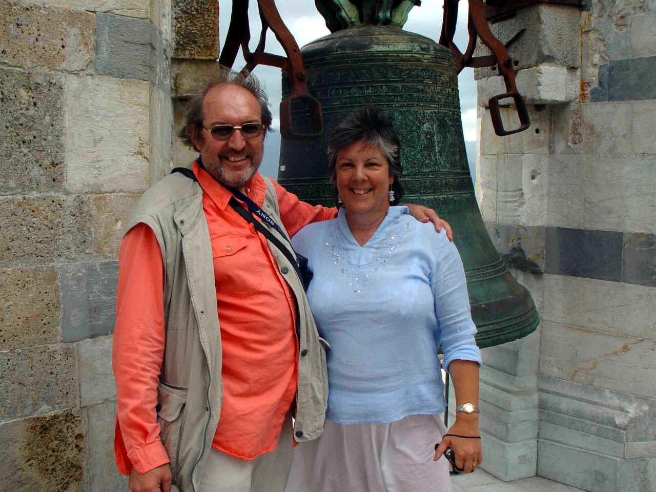 John at the top of the Leaning Tower Jenny and Bernard in Lucca