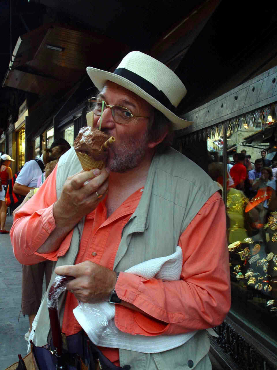 John just before his ice cream on the Ponte Vecchio Bridge John with his ice cream on our Wedding Anniversary
