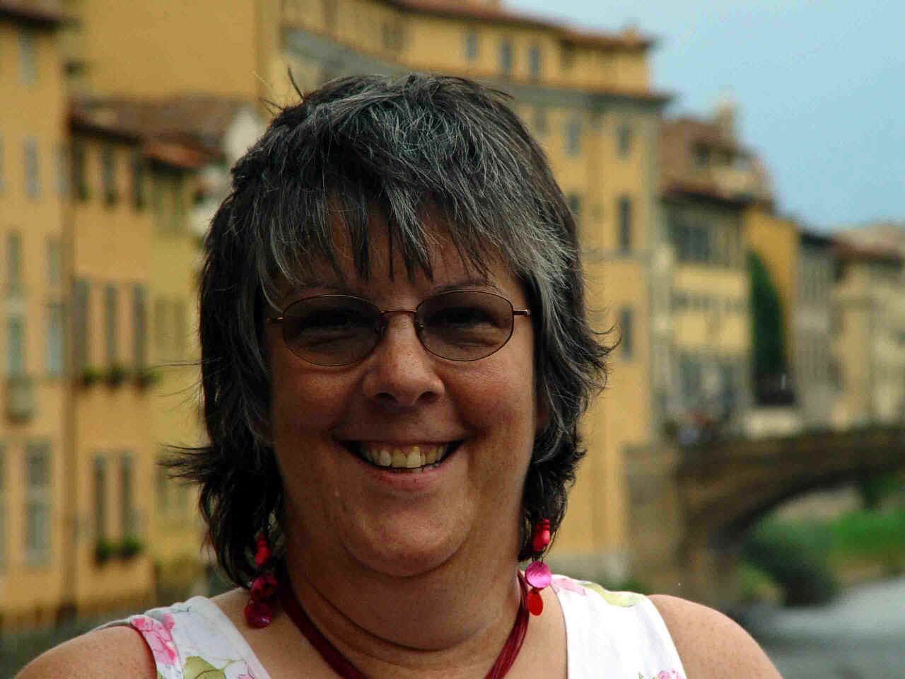 Sue on our Wedding Anniversary Ponte Vecchio Bridge, Florence