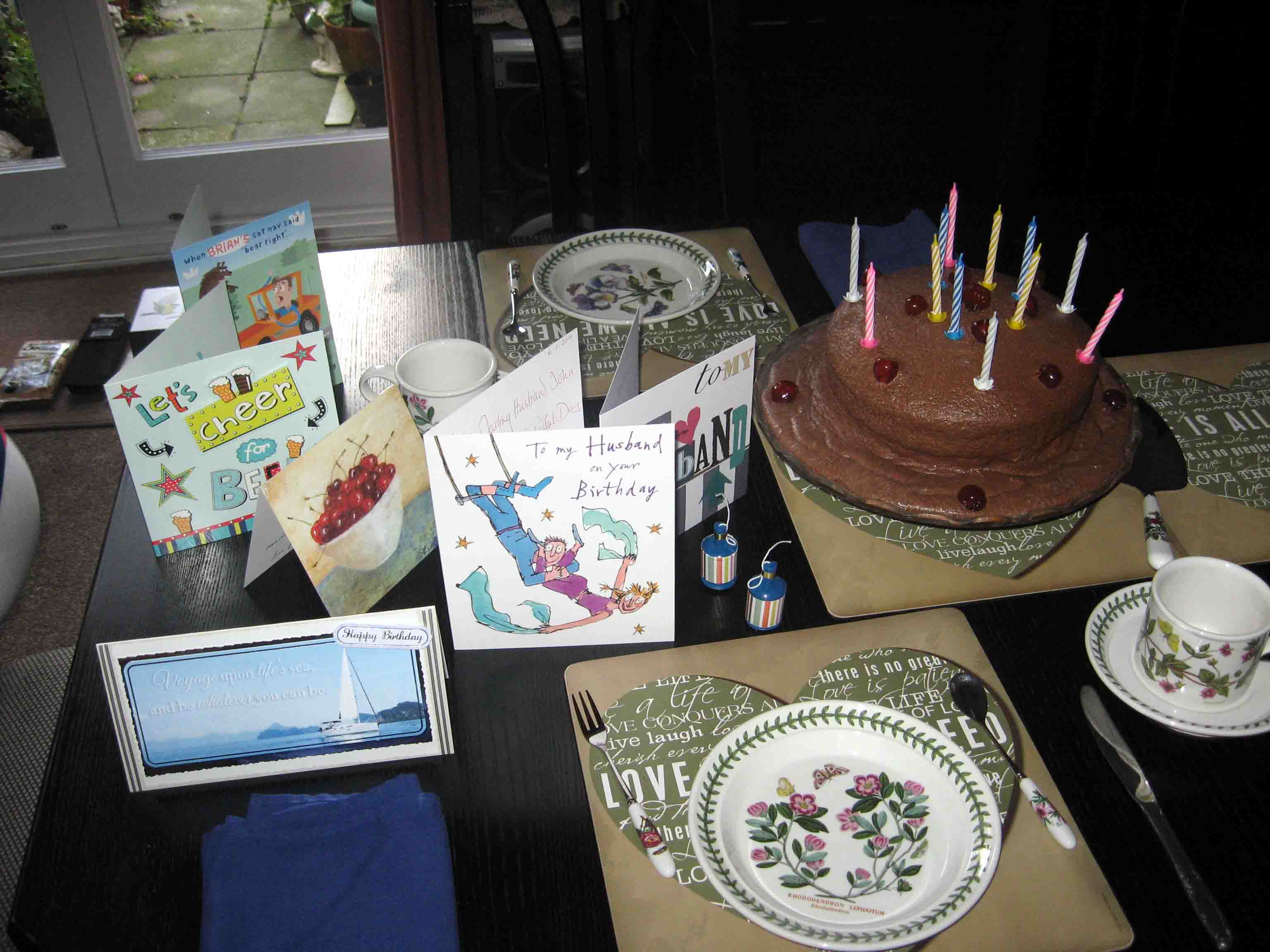 Card and present from Sue Then on to Tennis Table set for Birthday Tea John with cake made by Sue