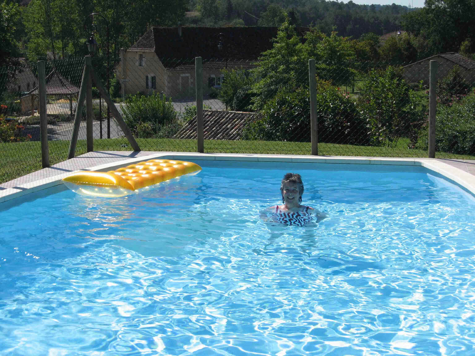 Sue does not waste any time getting in to the pool Relaxing after the swim Lunch at a very nice courtyard restaurant in Bergerac With our friends Eve and Guillaume at their restaurant in La Palmyre