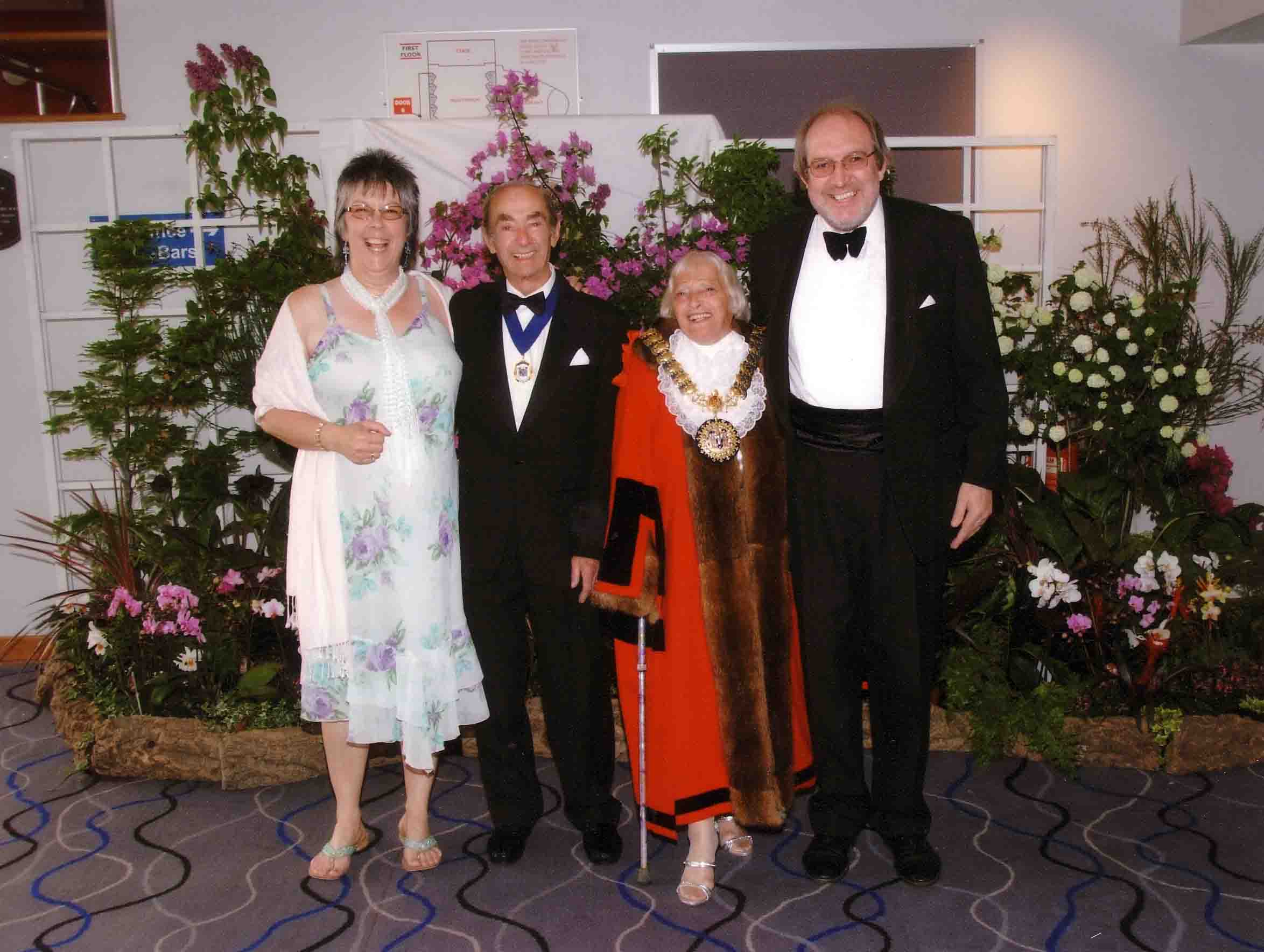 John and Sue with the newly elected Mayor of Southend-on-sea and her escort, just before the start of the Mayor's Banquet and Ball at the Cliffs Pavilion, Southend-on-sea on Saturday 10th May 2008. |