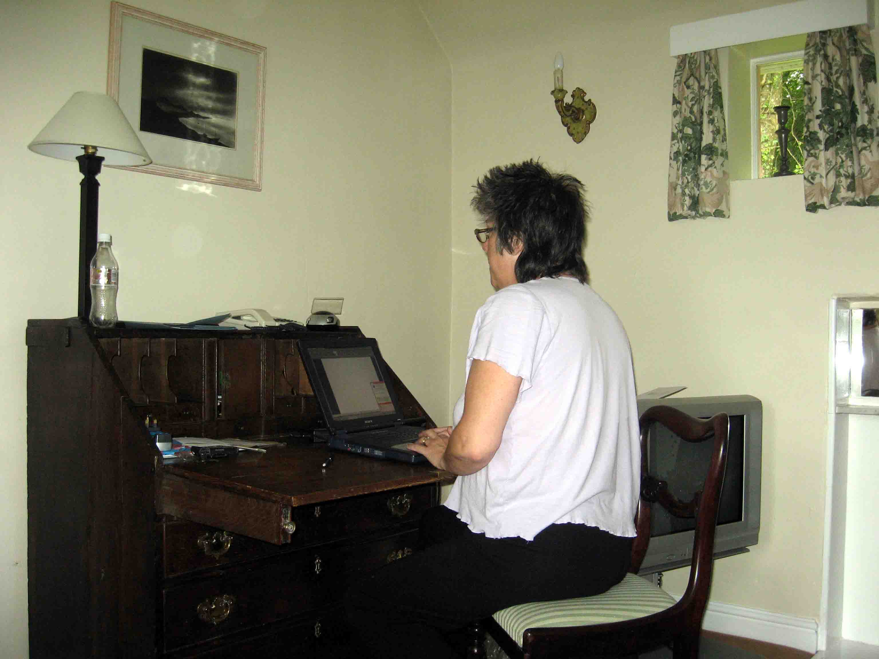 A view of the village Another view of the village Day view from Telford's Tower Night view from Telford's Tower Sue on the computer at Telford's Tower Coffee in the main hotel Sue in Telford's Tower with the results of her craft work John on the balcony of Telford's Tower The walk to Porthmadog Porthmadog station New rail line in road at Porthmadog ready for trains in 2009 On the train from Porthmadog to Minfordd Outside Telford's Tower Just before Sunday lunch