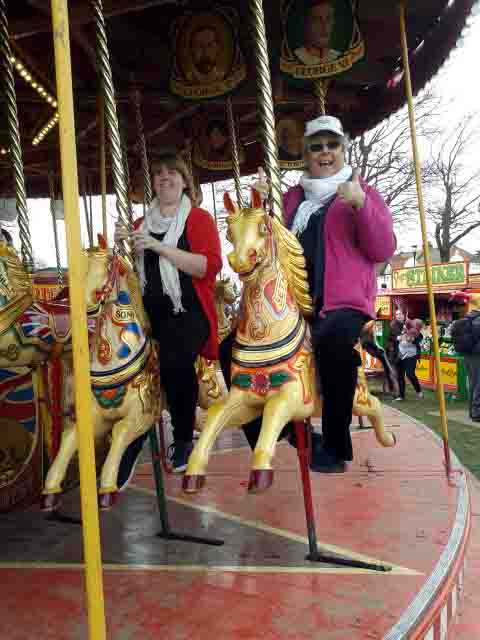 THE FAIR IN CHALKWELL PARK ON 1ST APRIL Sue on her favourite ride