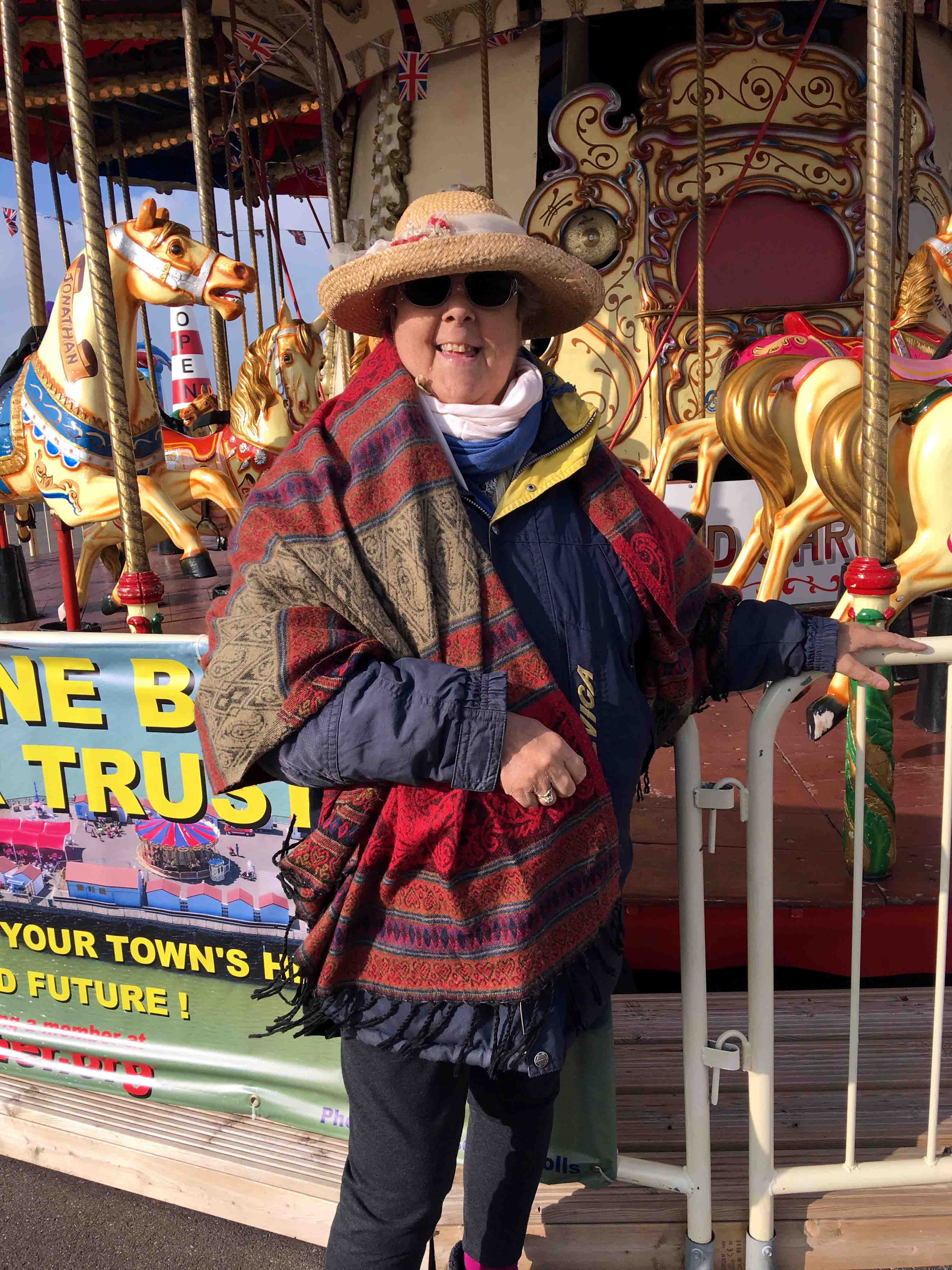 Sue's favourite fairground attraction again - this time on Herne Bay pier having driven there in the Morgan
