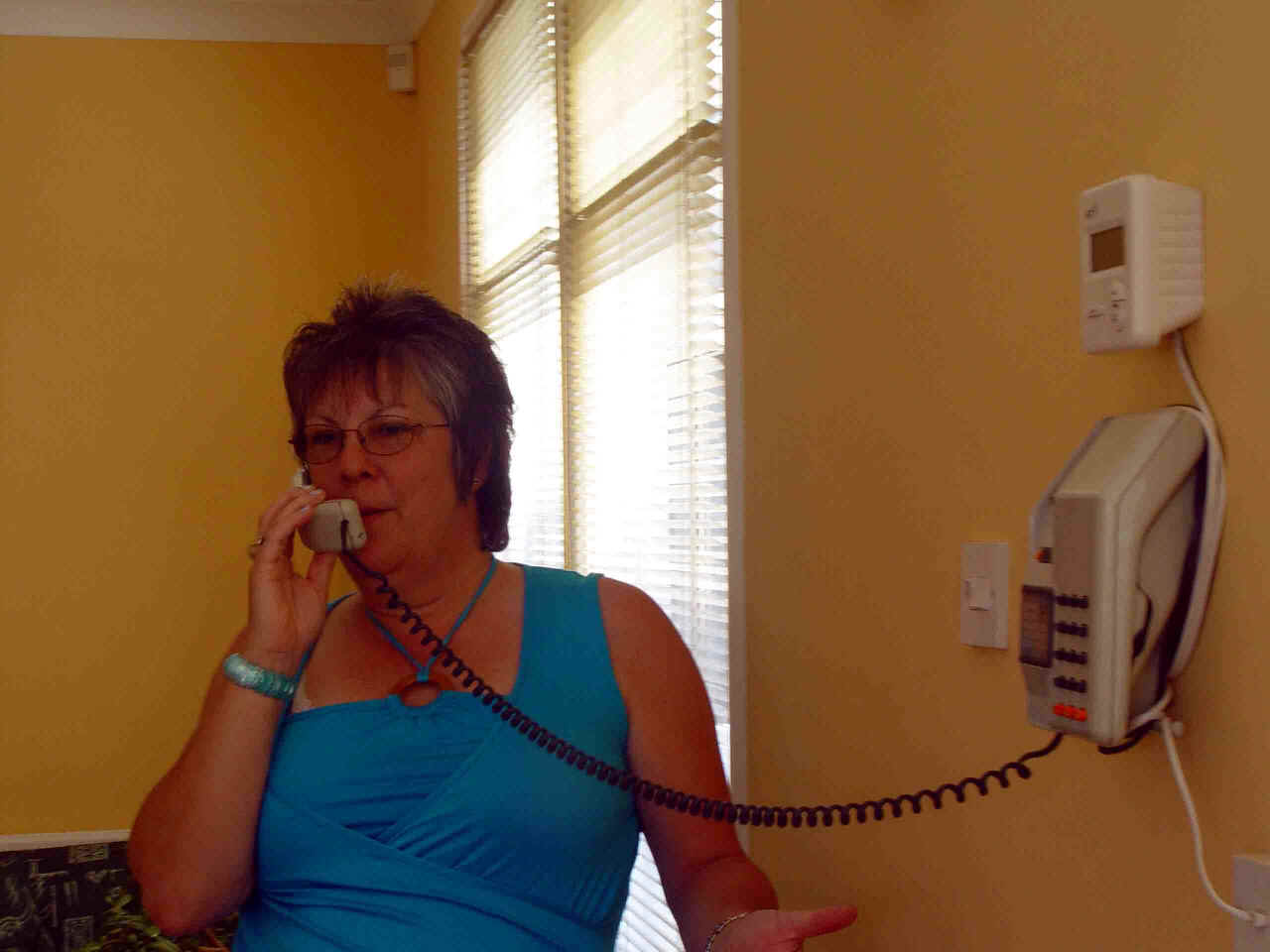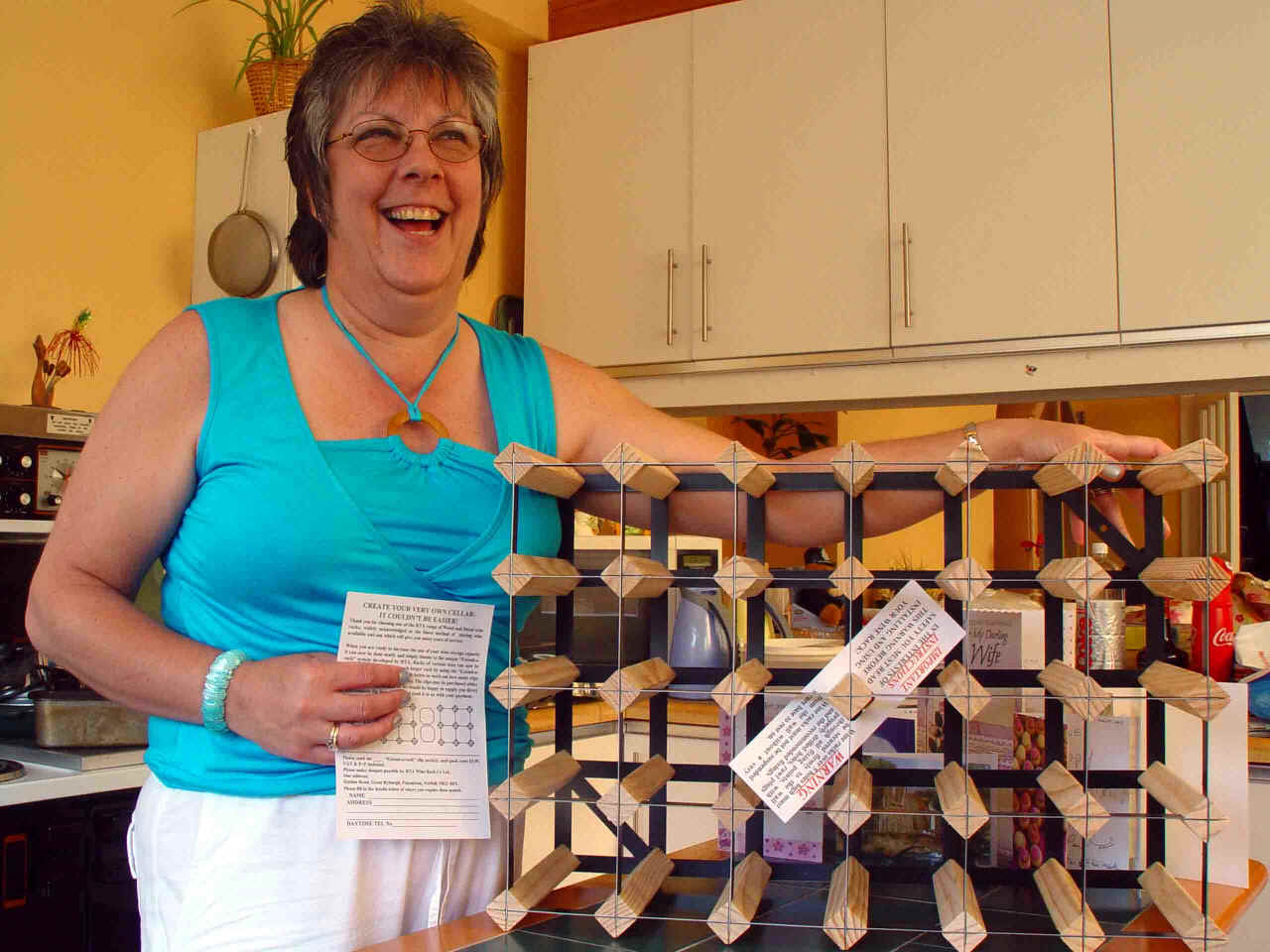 Sue with her birthday cards Sue with her Wine Rack - a present from John A call from Cousin Paul Birthday cake Birthday cake Birthday cake Candles being blown out Cake being cut Sue and Naomi A happy Sue Sue enjoying her birthday dinner Sue and John at dinner