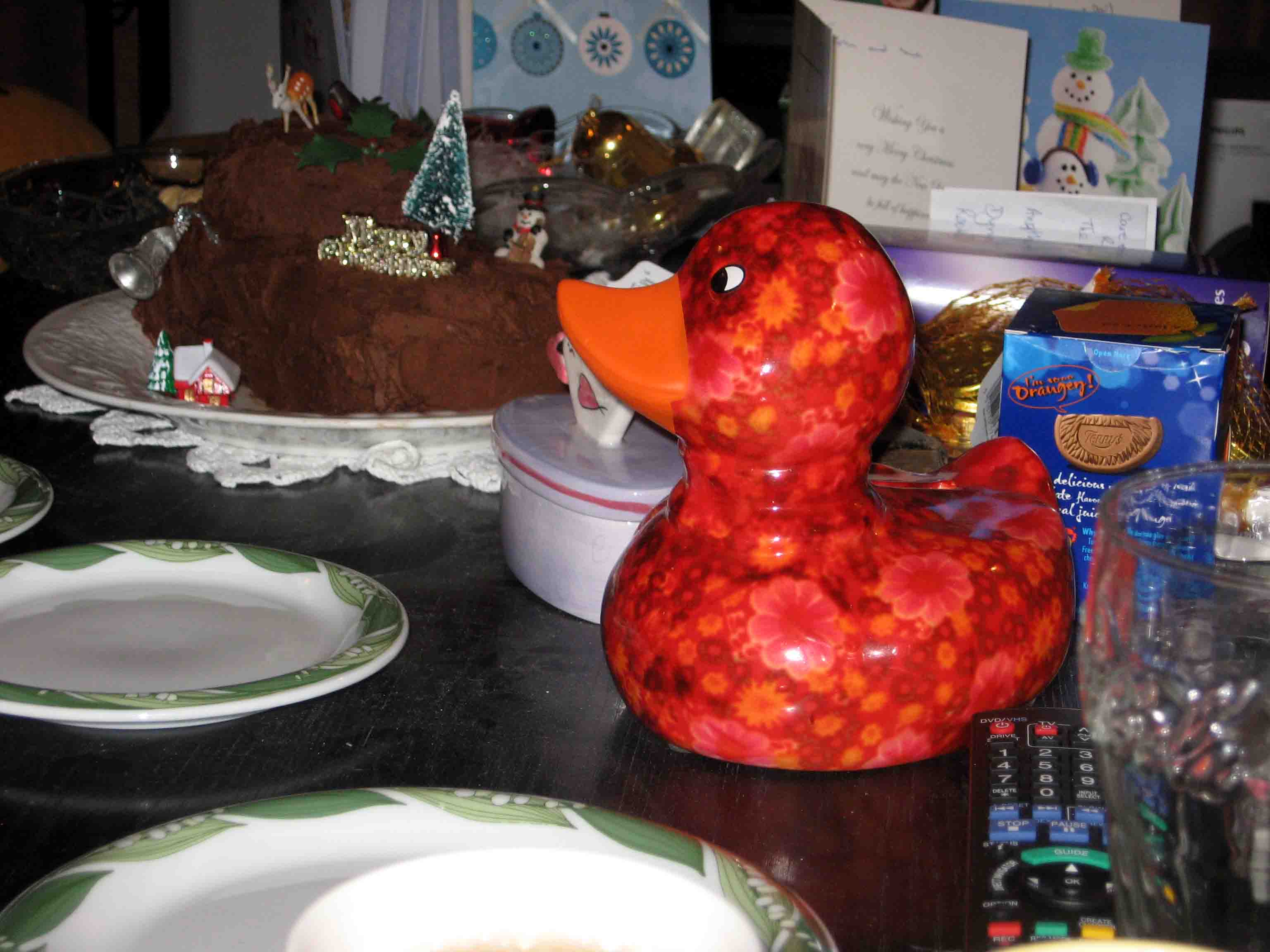 The Christmas Tree Carving the turkey A present from John - A Duck James takes care of the fire while Dad has a sleep Christmas cake which John won in a raffle