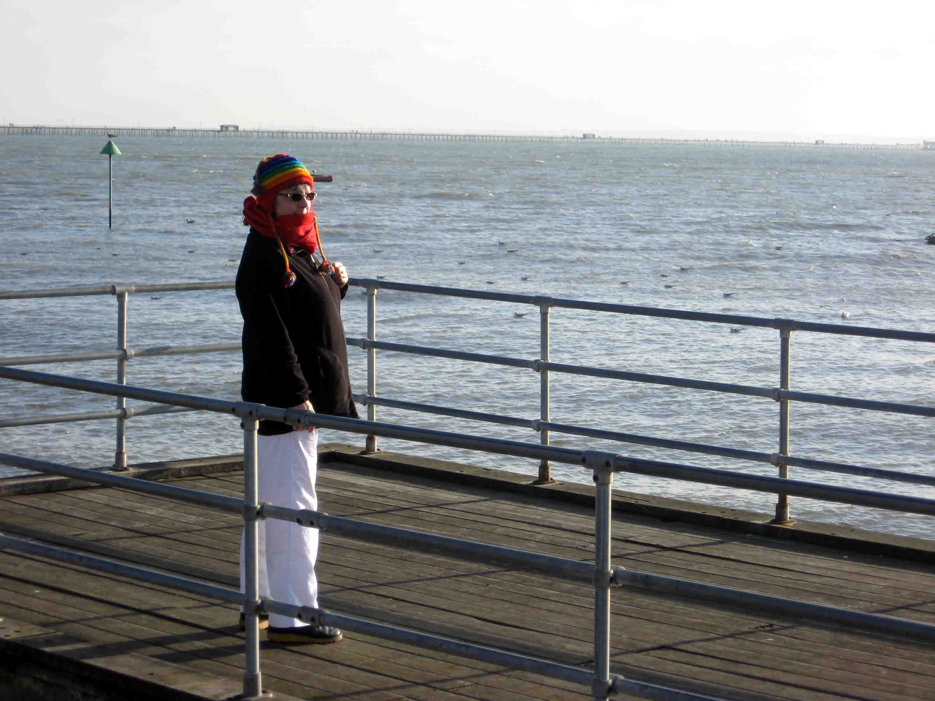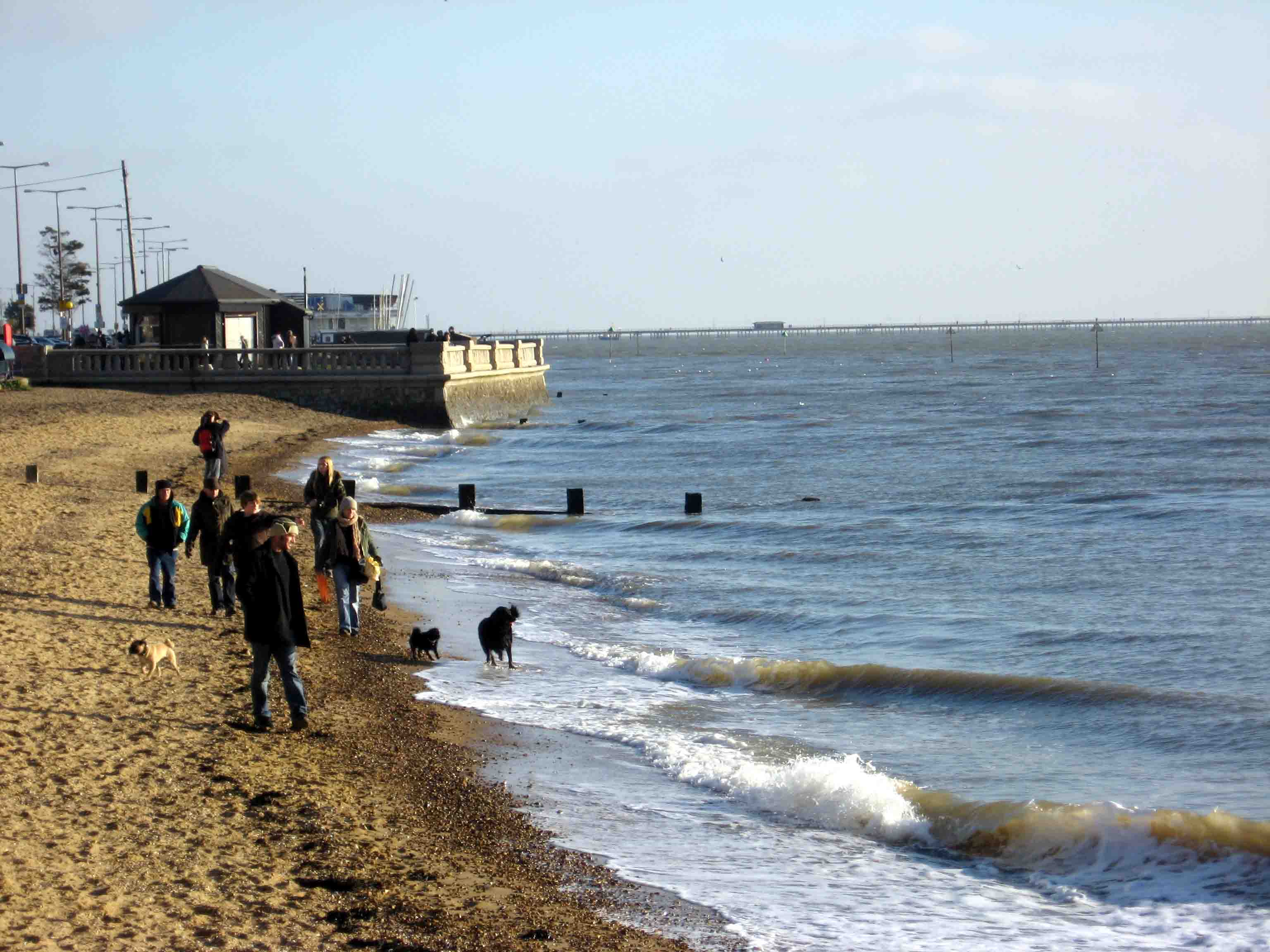 Boxing Day walk along the seafront Very busy with lots of people Site of the old beach huts that John went to with his grandparents in the 1960's The spot where "Shearwater" beach hut used to stand In the background the old swimming pool - now a casino Looking South from the beach huts you can see the Isle of Grain Looking north you see the Cliffs The end of the longest pleasure pier in the world (1.3 miles long) Train travelling along pier Mr Squirrel out on Boxing day The Cliff Lift (not operating at the moment because of European Union Regulations) Queen Victoria statue with recently repaired right hand damaged 1 year ago by yobs John taking it easy on the way home